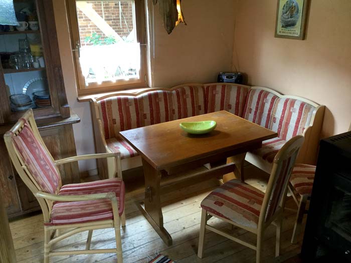 Mit der Sitzecke vor der Ferienwohnung und dem angrenzendem großen Gartengelände bietet die Ferienwohnung fürs Frühstück, Grillen und Bücher lesen genügend Raum für all jene, die mehr Wert auf die freie Natur als auf eine große Ferienwohnung legen.