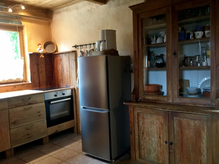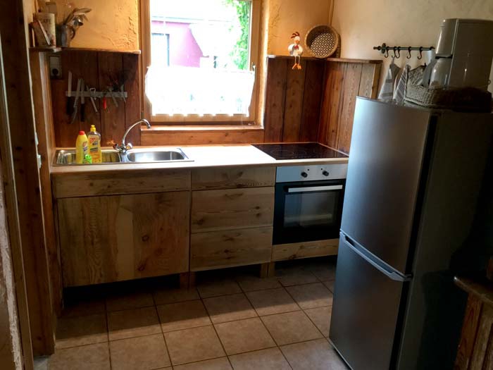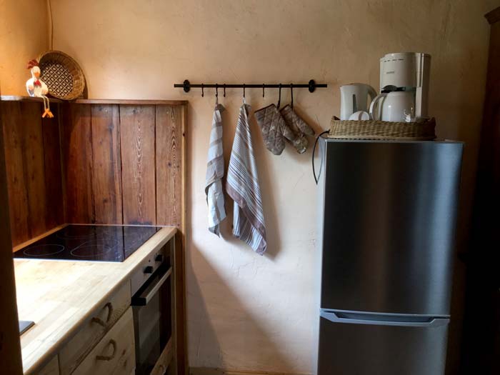 Die Ausstattung besteht aus einer Küchenzeile mit Elektroherd und Cerankochfeld, Kühlschrank mit Gefrierkombination, Bad mit Dusche und Toilette und einem Schlafboden mit Matratzenlager.